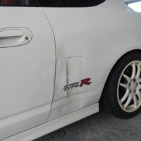 【大きなヘコミも板金修理で元通り・・・!】 板金塗装修理のご依頼です。ホンダ・インテグラ タイプRです。 ネッ …