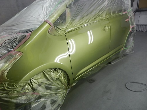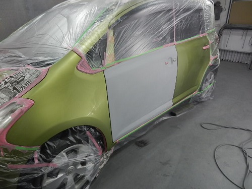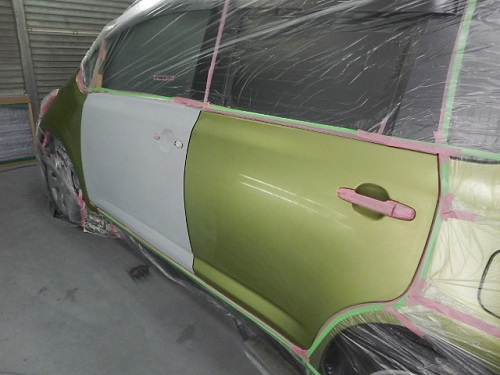 フロントフェンダーとリアドアまでボカシ塗装で色を馴染ませていく塗装をします。