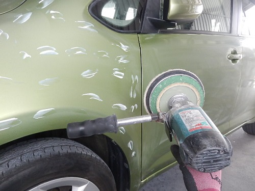 ▼肌調整したのちコンパウンドを塗りポリッシャーでツヤが出るまで磨きこんでいきます。
