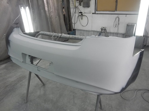 ▼リアバンパーも全体的にベースコート(カラー)をサフェーサーを消すように