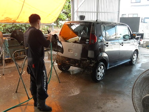 塗装部分の油分や汚れなどをキレイに脱脂していきます。