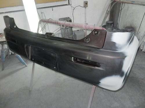 ▼リアバンパーもパテを盛ってサンディングして形を整えます。