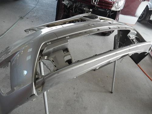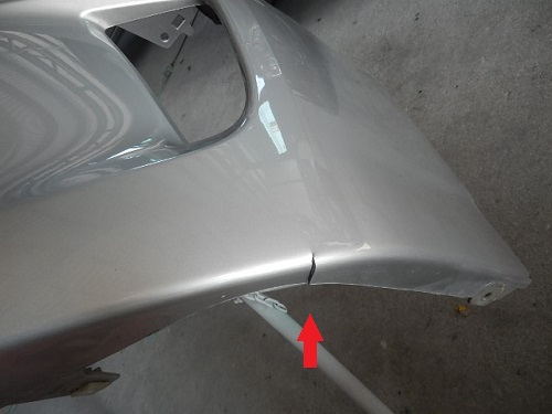 ▼フロントバンパーを取り外す前はきずかなかったですが下にも亀裂がありました。
