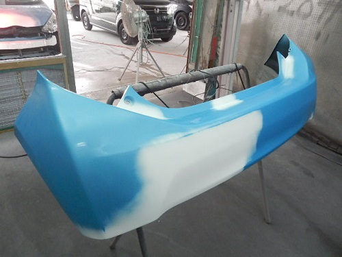 ▼リアバンパーもサフェーサーが見えなくなるまでベースコート(カラー)を