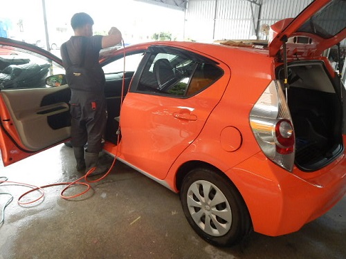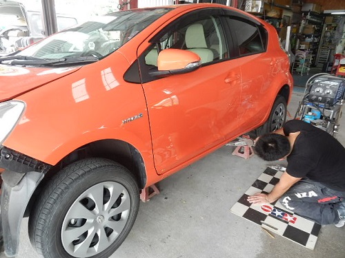 豊見城市よりトヨタ・アクアのヘコミ、キズの板金修理のご依頼です。