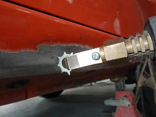 ▼ワッシャーを溶接してスライドハンマーと言う専用の工具で引き出します。