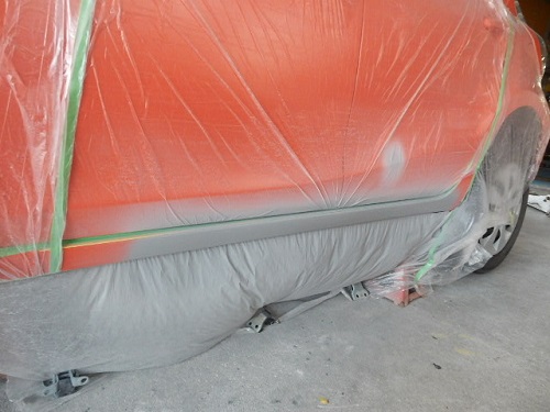▼ステップパネルの塗装ですがリアフェンダーからつながる部分まで