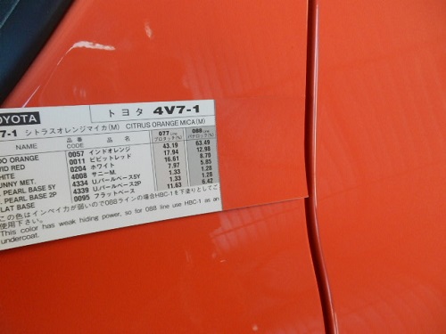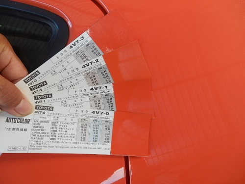 ▼翌日、塗装準備の前に色合わせを行います。カラー番号は4V7です。