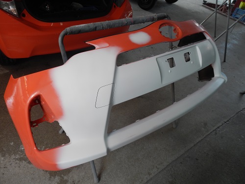▼フロントバンパーも同時進行で塗りました。脱脂して塗装開始。