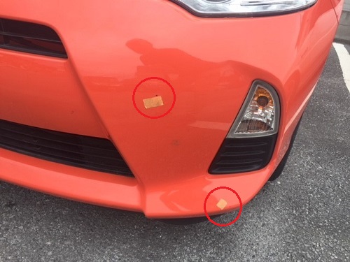 ▼フロントバンパーは飛び石によるキズが多数ありました。