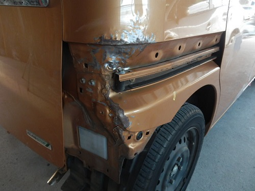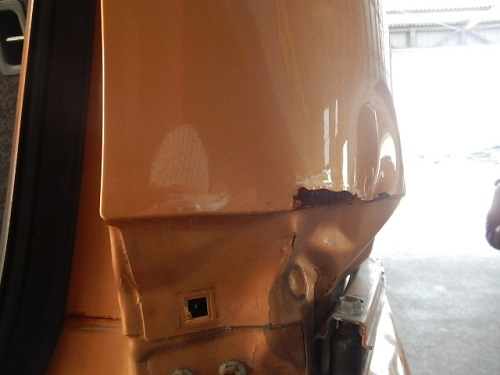 後方を強くぶつけたらしく、大きくへこみサビも出始めて、