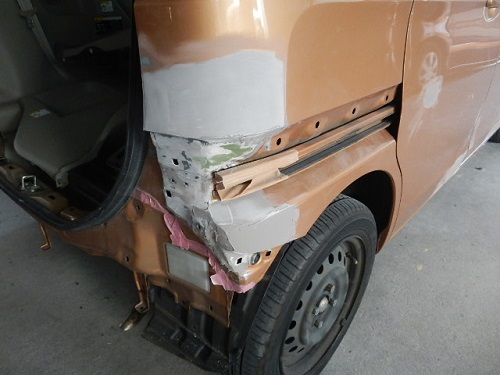 ▼リアフェンダーはステップ内側も少しの板金修理があった為、