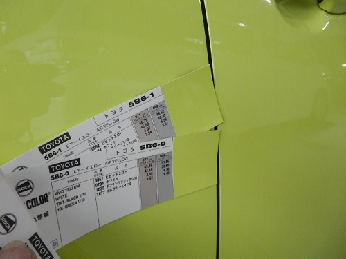 ▼塗装前には色合わせのカラーサンプルで合わせていきます。