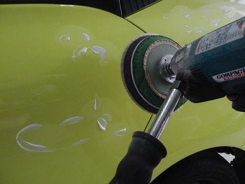 ▼次にペーパー跡を消すためにコンパウンドを塗りシングルポリッシャーと言う