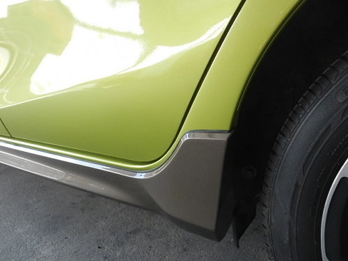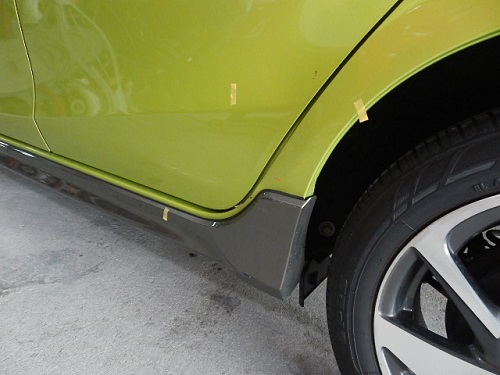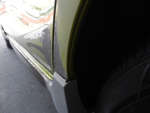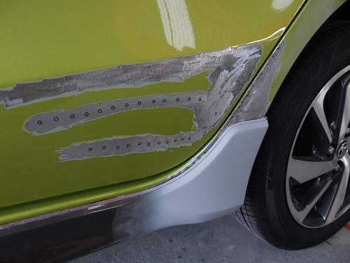 ▼板金下部分をサンディングしてパテを盛っていき形成してサフェーサーを塗布します。