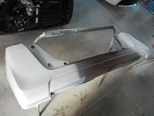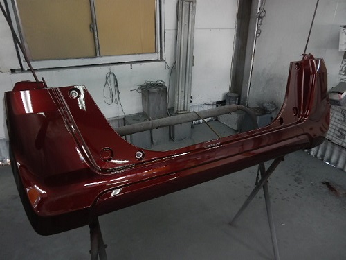 ▼バンパーも取り付けて塗装して面のブツや細かなホコリが付着したのを処理し磨いていきます。