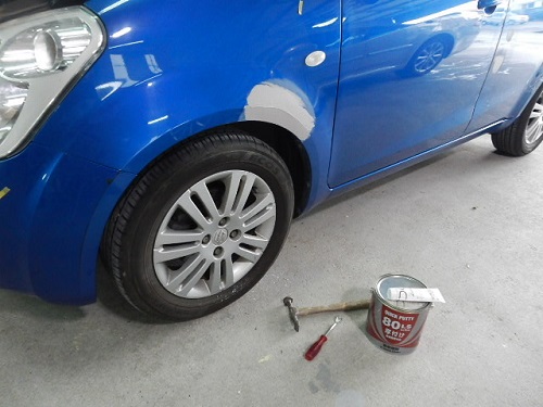 キズ、ヘコミなどを直していきますよ。