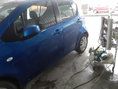 ▼塗装面の処理からしてポリッシャーと言う機械で磨いていきます。