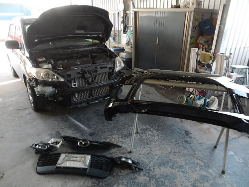 ▼作業がしやすいようにフロントバンパーを取り外して行きます。