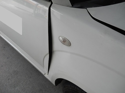 運転席のドアを開けた際にフェンダーが凹んでしまったようです。