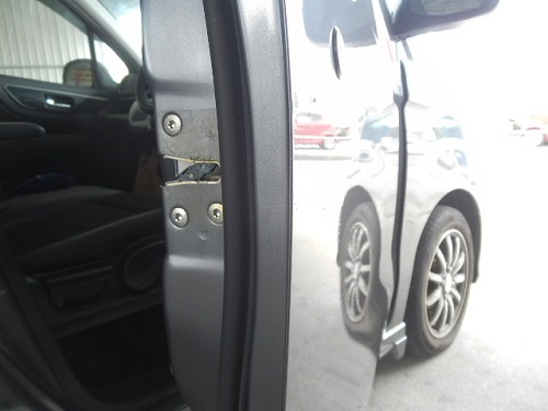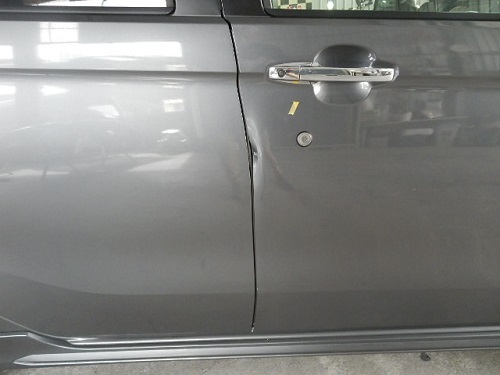 ▼板金箇所は運転席のドアです。ドアを開けた際にぶつけたということです。