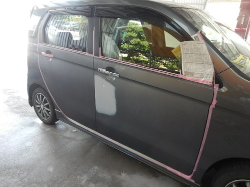 ▼リアドアには当たっていないようですが多少のキズがあった為、リアドアまでボカシ塗装をすることにしました。