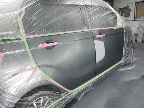 ▼翌日塗装準備の足付け作業をしてマスキング作業に入ります。