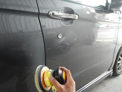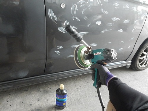 ▼そして目消しのコンパウンド(白い液状)を塗りポリッシャーと言う機械で磨いていきます。