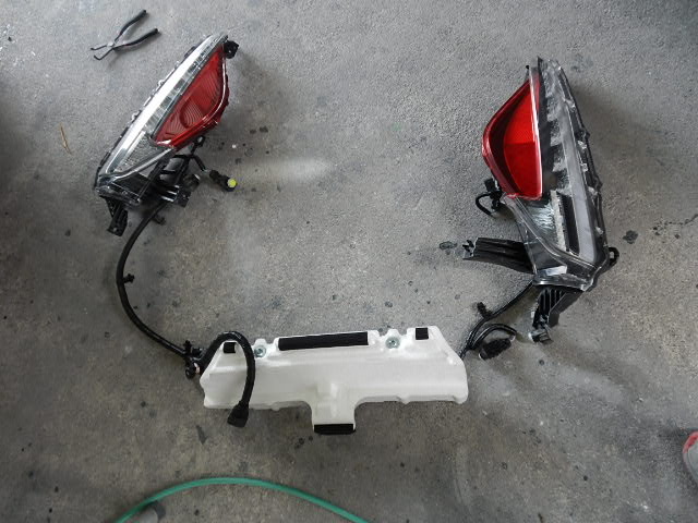 バンパーの裏はこうなっています。追突防止のソナーも取り外します。