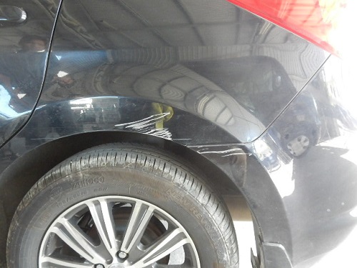 リアドアのひっかきキズとサイドステップのキズの板金修理です。