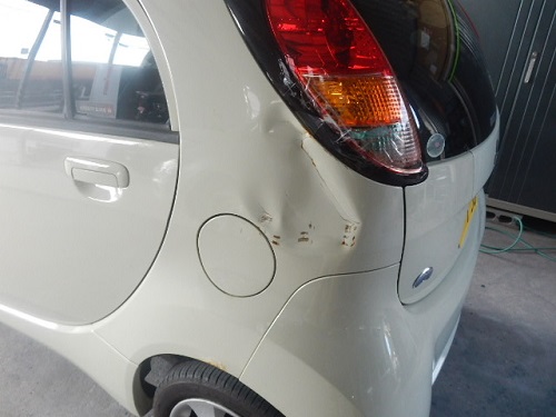 リアフェンダーのヘコミは大きく損傷しているのが分かります。
