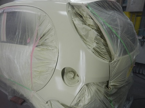 ▼翌日には塗装準備に入ります。ベースコート→クリアーコートの順で仕上げます。