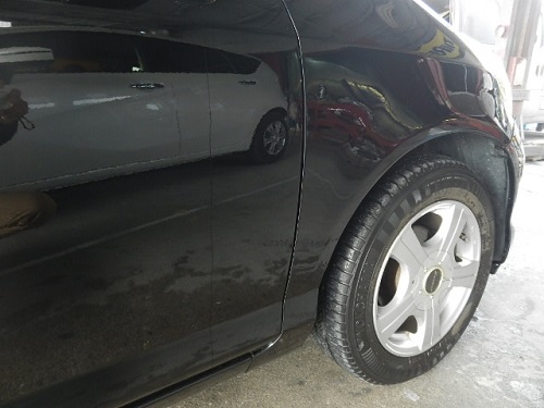 ▼作業は進み塗装後の翌日に磨き作業をして仕上げました。ドアミラーは中古パーツです。