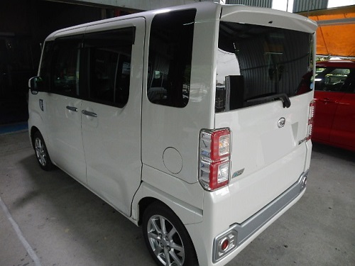 ▼パールホワイト塗装なので3工程の作業です。ベースコート→パールコート→トップコート(クリアー)の順で塗装します。塗装後磨き作業をして作業完了です。室内清掃と洗車をして納車致しました。
