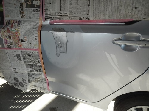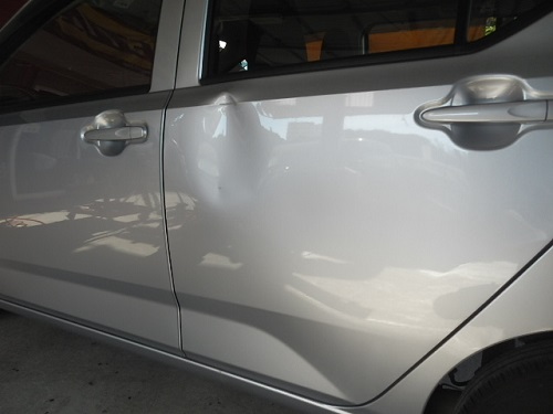 ▼風にあおられてドアがぶつかったようです。このようなヘコミは多いですね。