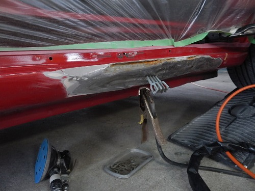 ▼引き出し用の器具などを使ってヘコミ部分を修正していき➡パテ➡研磨➡サフェーサー➡塗装の工程で作業しました。