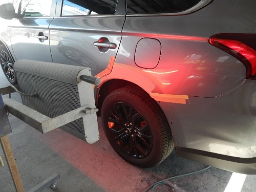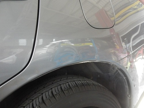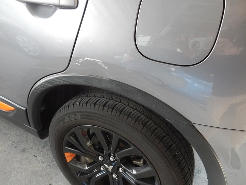 ▼クオーター左部分に擦ったキズ・ヘコミが確認できます。モールもキズが付いている為交換となりました。
