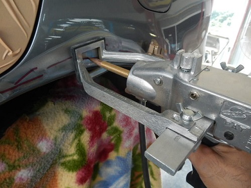 ヘコミの無い部分を押さえながら引き出すので鉄板の歪みが最小限で抑えられます。
