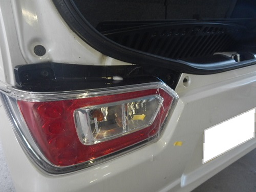 ▼よく見るとテールレンズまで割れていました。バックパネルまで多少押された状態でしたので修正して引き出しました。