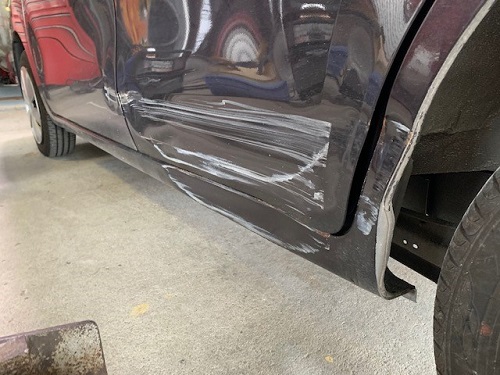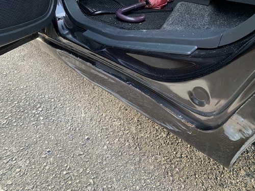 ▼ロッカーパネルがヘコミで結構中に入ってます。約2~3センチ程度凹んでました。