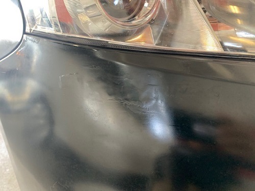 ▼フロントバンパーのコーナー部分をお客様自身にて補修を試みたようです。