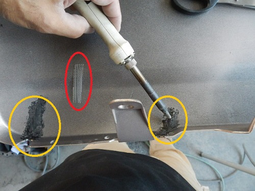 このステンレス製の網を板金専用の半田ゴテを使用して、