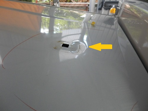 ▼丸印部分のルーフアンテナ根本付近のヘコミです。